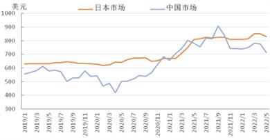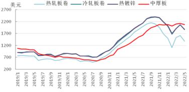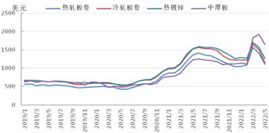 图5 2019-2022年亚洲扁平材市场价格走势图
