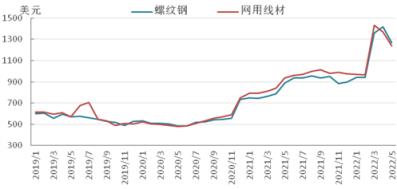 图6 2019-2022年亚洲螺纹钢价格走势图