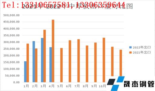 至于出口方面,据不完全统计,2022年4月份国内中板出口量约为26.09万吨,环比3月份出口量下降约6.94万余吨,与2021年同期相比出口量下降约20.51万吨左右,随着国外市场复工复产节奏加快,中厚板品种对于国内资源依赖性逐步降低。