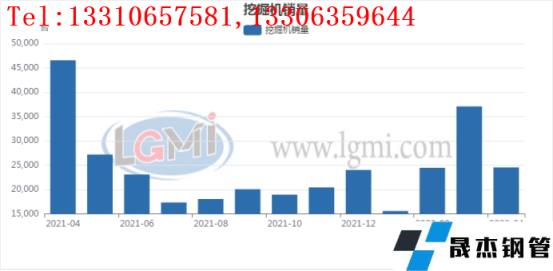 4月份国内挖掘机产量为13981台,环比3月份减少约16831台。同比21年同期减少约29431台。