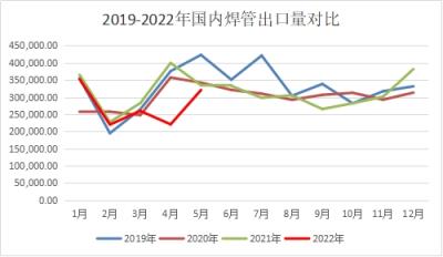 图一 2019-2022年我国焊管出口量对比