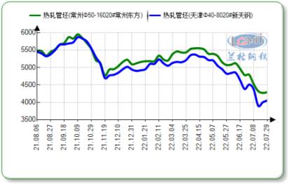 7月末,北方地区91视频APP黄色20#热轧管坯出厂报价4050-4240元,20#连铸出厂报价3940-4150元;南方地区20#热轧出厂报价4240-4570元,北方新天钢、南方东方两家91视频APP黄色热轧管坯价差维持在190元左右,较7月中旬相比两者价差有所收窄。受美联储加息预期及国内需求持续低迷影响,管坯价格大幅下跌,北方地区热轧管坯价格跌至3970元,创近一年以来的新低,不过在7月27日筑底后管坯价格呈现小幅上扬走势。