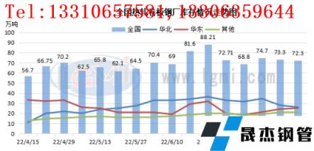 截止2022年7月29日,据云商平台监测数据显示,国内热轧卷板社会库存量约为272.11万吨,较上月底增加7.58万吨。重点城市库存方面,华东区域社会库存小幅累库,华北、华南热卷库存呈现去库走势。具体来看,广州地区热卷社会库存量约为69.93万吨,较上月底下降0.95万吨;上海热卷社会库存量37.00万吨,较上月底持平;天津热卷社会库存量约为7.00万吨,较上月底下降1万吨。